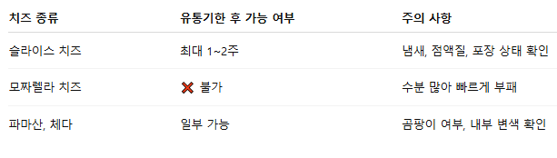 - 슬라이스 치즈: 개봉 후 비닐 밀봉 → 냉장 보관 (4℃ 이하)