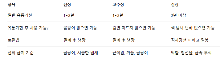 오늘은 된장, 고추장, 간장 각각의 유통기한 지난 후 섭취 가능 여부와 확인법을 정리해드릴게요.