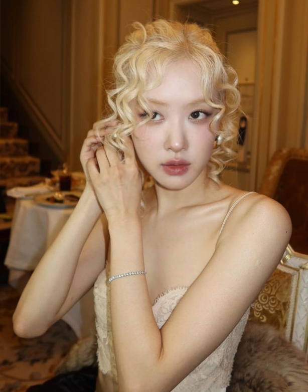 - 헤어 컬러 : 금발 헤어는 그녀의 얼굴을 더 환하고 부드럽게 만들어 주며, 전체적인 룩의 청순함을 배가시켰어요.