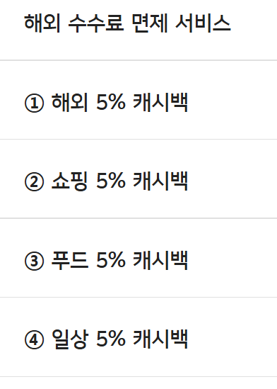 특징 : 국민은행의 글로벌 트래블 카드는 최대 14개의 외화를 충전할 수 있어, 다국적 여행을 자주 다니시는 분들께 좋습니다. 국민은행의 ‘리브(Liiv)’ 앱을 통해 간편하게 외화를 충전할 수 있고, 외환 수수료 부담이 적어 해외 사용 시 경제적인 카드예요. 주요 외화 환전 시 최대 90%까지 우대 혜택도 제공해 비용 절감에 유리합니다.